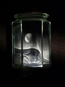 本来壜詰めが不可能な「存在」を「映像」の状態で壜詰めすることで「不可思議」な時空間を表出させるというコンセプトです。 また、スポットライト等でいろんな角度から照明をあてることにより様々な見え方の変化を楽しめます。